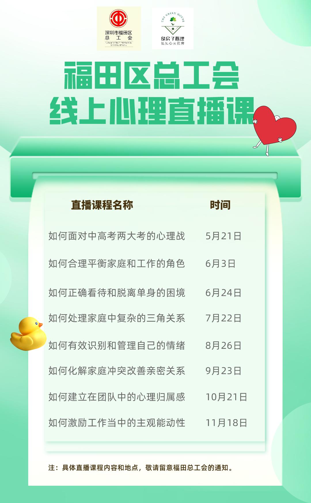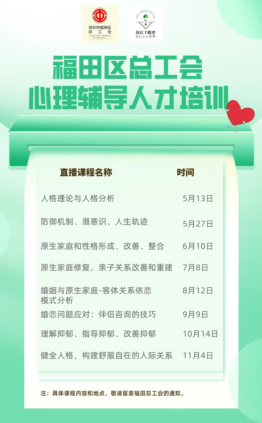 福田区总工会的心理辅导人才培训为职工小伙伴们带来精彩的心理咨询课啦!2021心聆关爱行动的“重头戏”也已开启,全年课程真的超多!