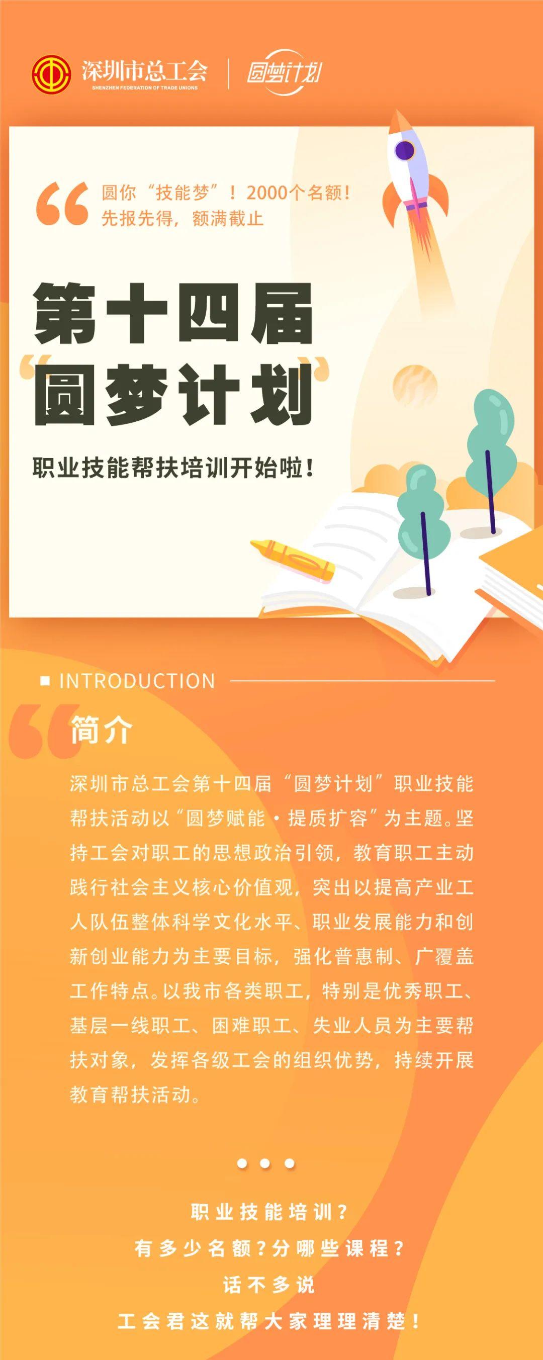本届“圆梦计划”公益性技能培训共2000个名额,教学场地为坪山校区、八卦岭校区,一旦报名成功不得更改!