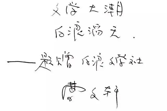著名作家曹文轩先生曾为我校文学社题字:文学大潮、白浪滔天。