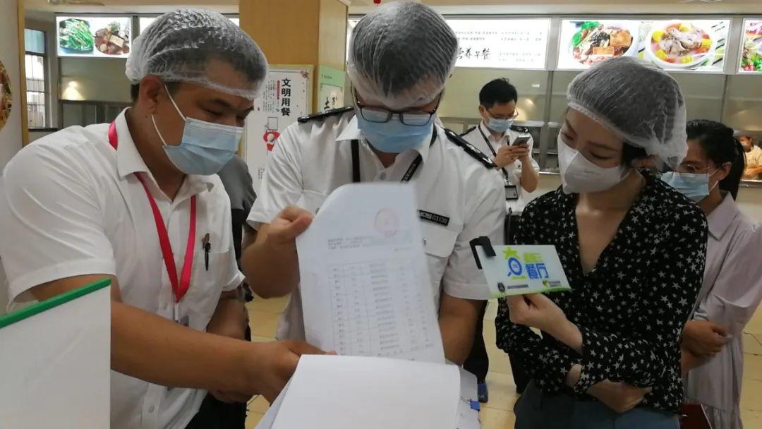执法人员根据《深圳市食品安全违法行为记分检查表》以及疫情防控具体要求,对光明书院食堂的疫情防控措施落实情况、食品安全管理制度、后厨卫生状况、场所环境、设备设施、食品原材料进货查验及索票索证情况、食品留样管理等进行了详细检查。“蓝马甲”现场对4批次食品原材料进行快速检测,结果均合格。