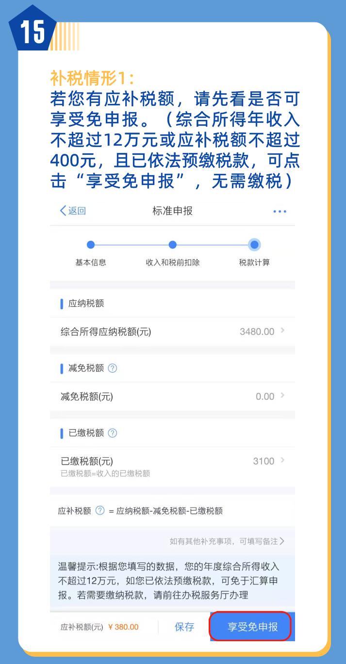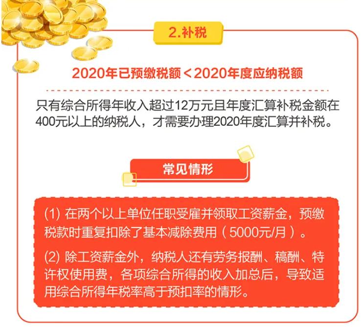 对于需补税金额≤400元的纳税人,不论综合所得年收入多少,也无需补缴税款。