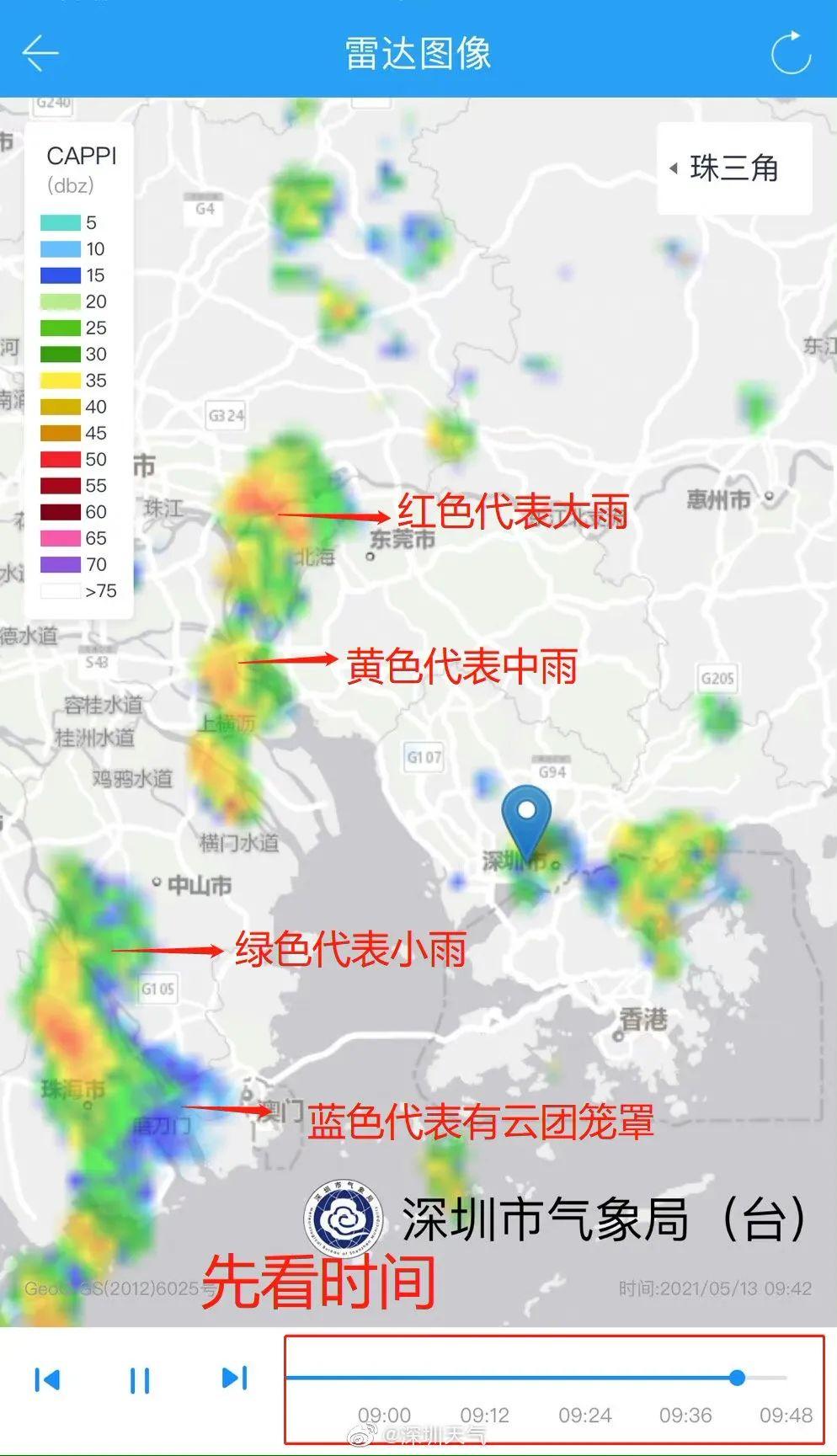 (深圳天气app和公众号都能查看雷达回波图哦)