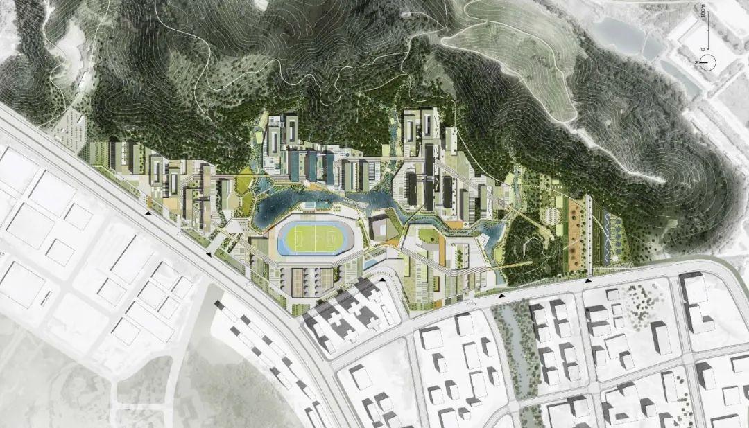 位于城市与生态区的交界地带,方案试图探讨一种崭新的城市与自然共生的方式。新建建筑与自然交织起来,形成一个积极而健康的界面。