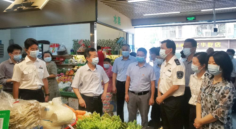 深圳市市场监督管理局党组书记、局长李忠于5月29日星期六上午,带队到罗湖区商超、药店、农贸市场等重点场所检查疫情防控工作。