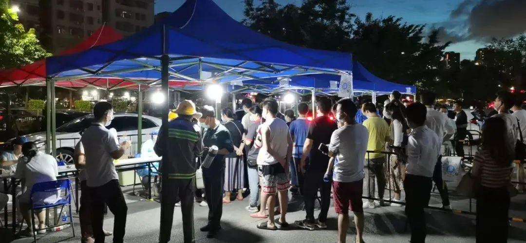 5月26日晚,华中科技大学协和深圳医院(南山医院)核酸检测应急采样队120多名医务人员“披星戴月”,分别到粤海和南头两个街道的10多个小区,进行核酸检测采样,采样工作一直持续到第二天早上5点多。医护人员通宵达旦鏖战,与病毒赛跑,累计采集咽拭子标本3900余份。