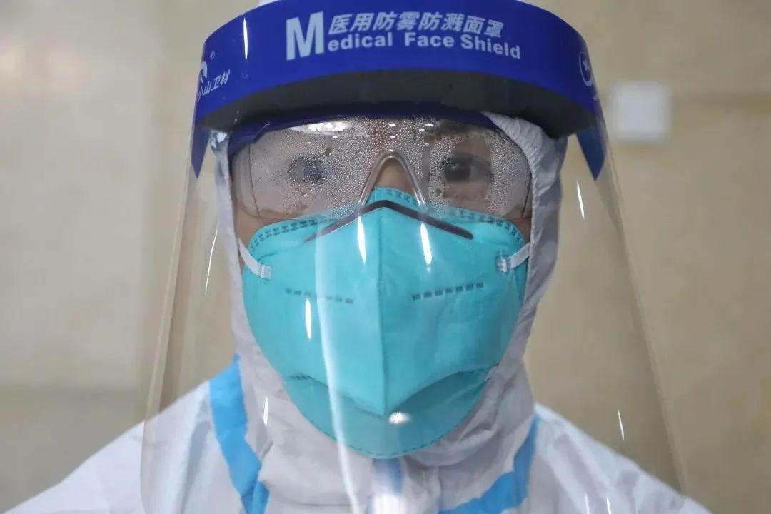 由于地方小人多,虽然有空调,但是身穿不透气防护服的医护们都表示,“衣服湿透了,感觉里面在滴水。”有个护士小姐姐的眼罩里面全是汗水。