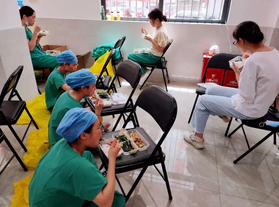 趁着等待间隙,医护们稍微休息一下。休息一会儿,她们又充满了能量,精神满满地投入到“战斗”中。
