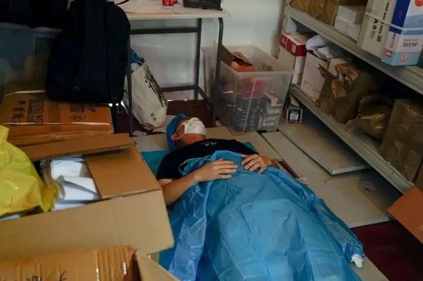 “清零”工作一直持续到早上5点半左右,回到医院,医护人员在沙发上,凳子上,折叠床上睡了一个多小时后,又开始了新一天的工作。