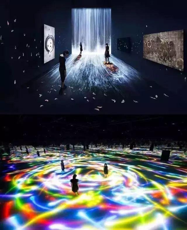 还有一种类型是在物理技术、新媒体、新电子科技下完成的装置艺术,这个是目前发展最快的、花样最多的也是在展览中最吸引眼球的作品,回去翻你的朋友圈,极大可能当时刷爆你朋友圈的都是这类作品。