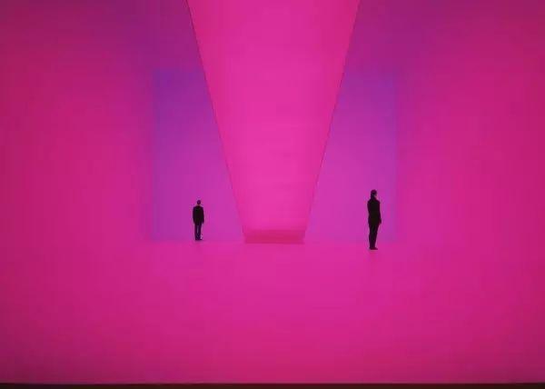 这是美国艺术家James Turrell的作品,他利用光创造一系列令人惊叹的作品,巧妙融合光、空间与观者的认知,使每个观赏者有独一无二的体验。他很会利用LED光和自然光,结合特定的空间设计,把一个展览变成一个彩色的漩涡。一般观者进入现场都会方向感和平衡感丧失。