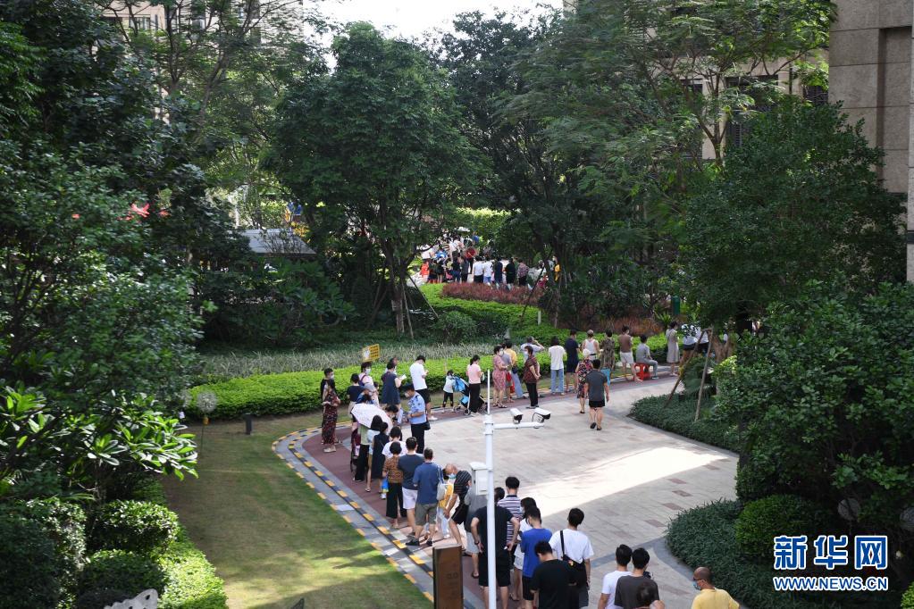 5月27日,在广州荔湾区白鹤洞街道一小区内,居民排队进行核酸检测。新华社记者邓华摄