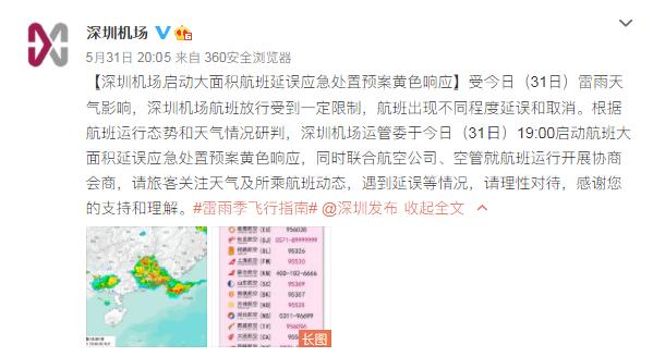 当机场广播和@深圳机场官方微博、小程序、深圳机场发布微信公众号发布机场启动航班大面积延误预警后