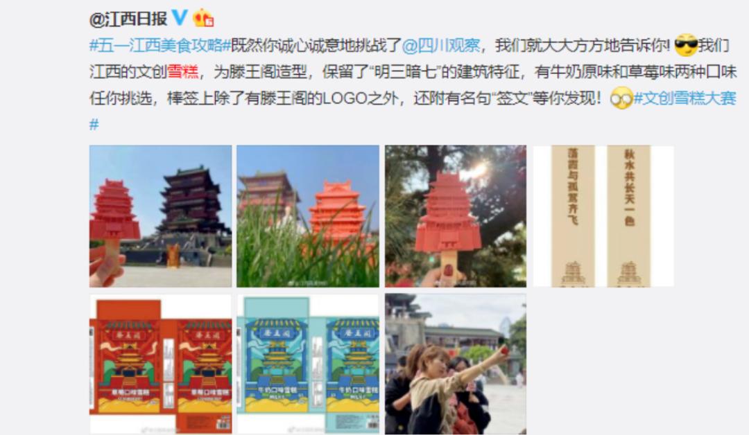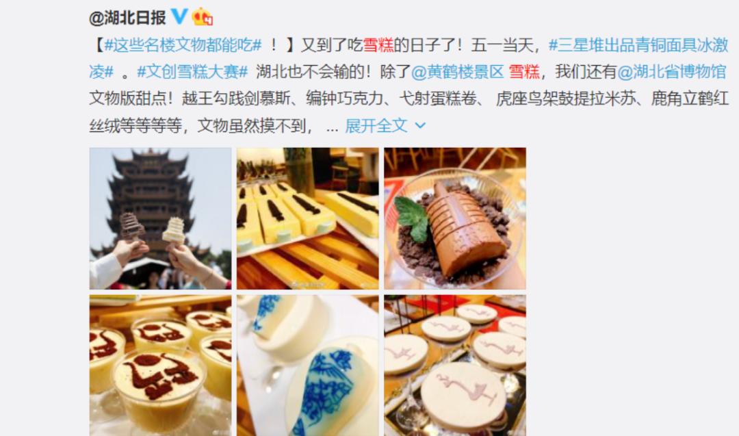 “黄鹤楼景区雪糕越王勾践剑慕斯编钟巧克力弋射蛋糕卷等等等等。”