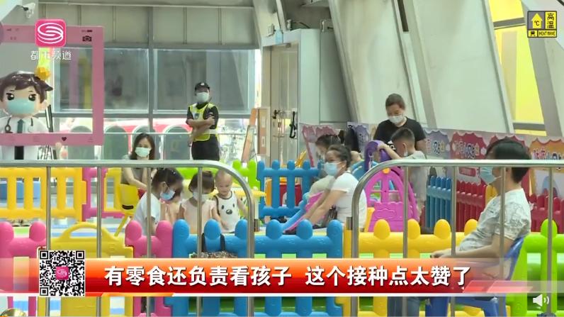 有的社康中心专门开辟了“儿童放置区”,还有专门的社工帮忙带孩子,让带孩子来打苗的家长能安心排队打苗。