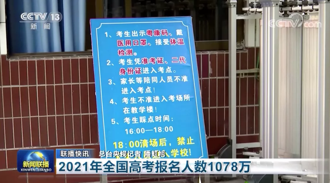 ⑥2021年全国高考报名人数为1078万,比去年增加7万。广东省通报高考筹备工作相关安排,高风险地区考生安排在3个考点参加高考,密接、次密接考生单独设置隔离考点。6月3日起,除广州考生外,我省2021年普通高考考生准考证可自行打印。广州市考生准考证打印时间安排由广州市招生办公室另行通知。