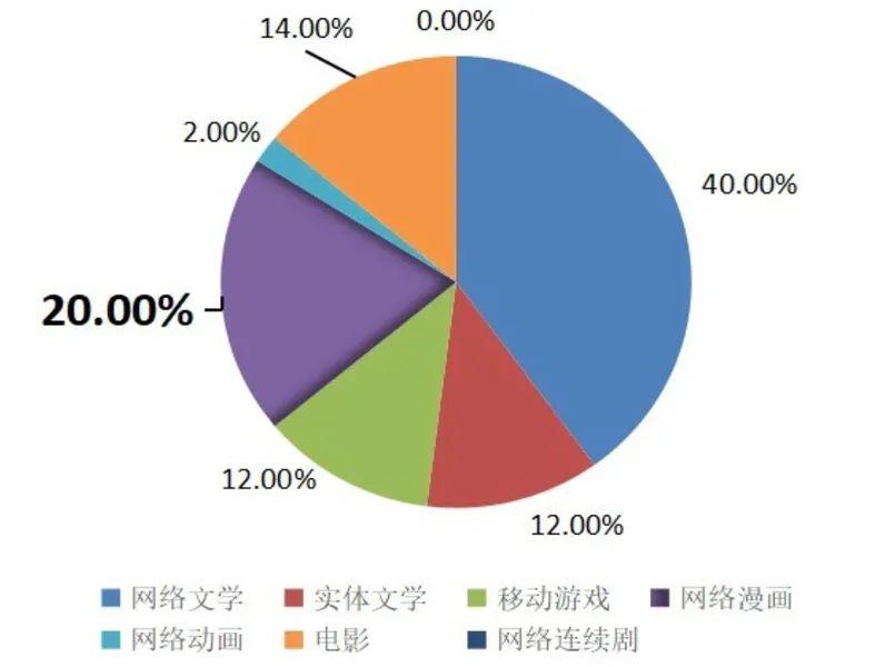 综合表现TOP50的IP原生类型占比(图表来源于《新华•文化产业IP指数报告(2021)》)