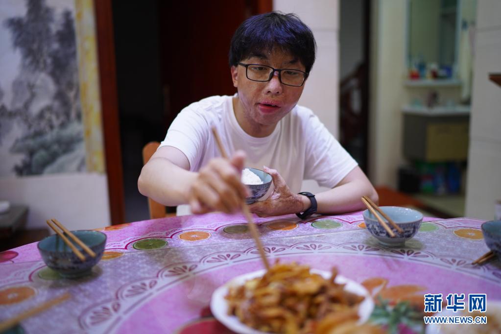 周涛在家里吃饭(6月3日摄)。新华社记者周密摄