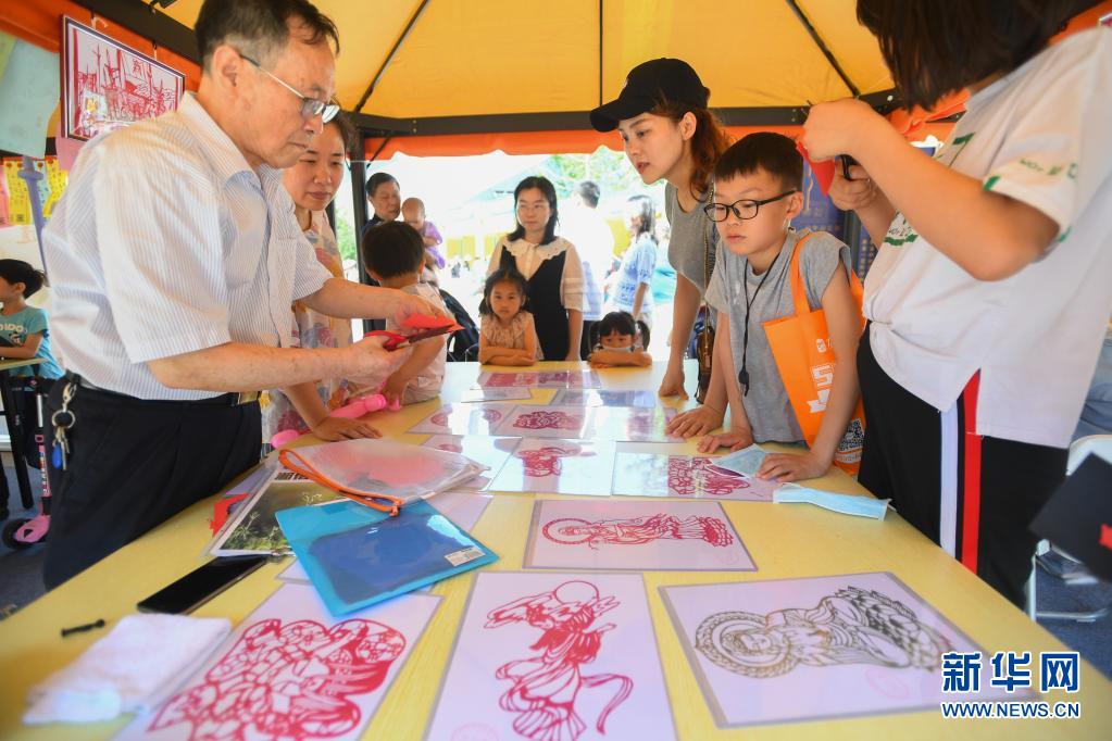 6月6日,在长沙市非遗宣传展示活动现场,市民在观赏剪纸技艺。新华社记者陈泽国摄