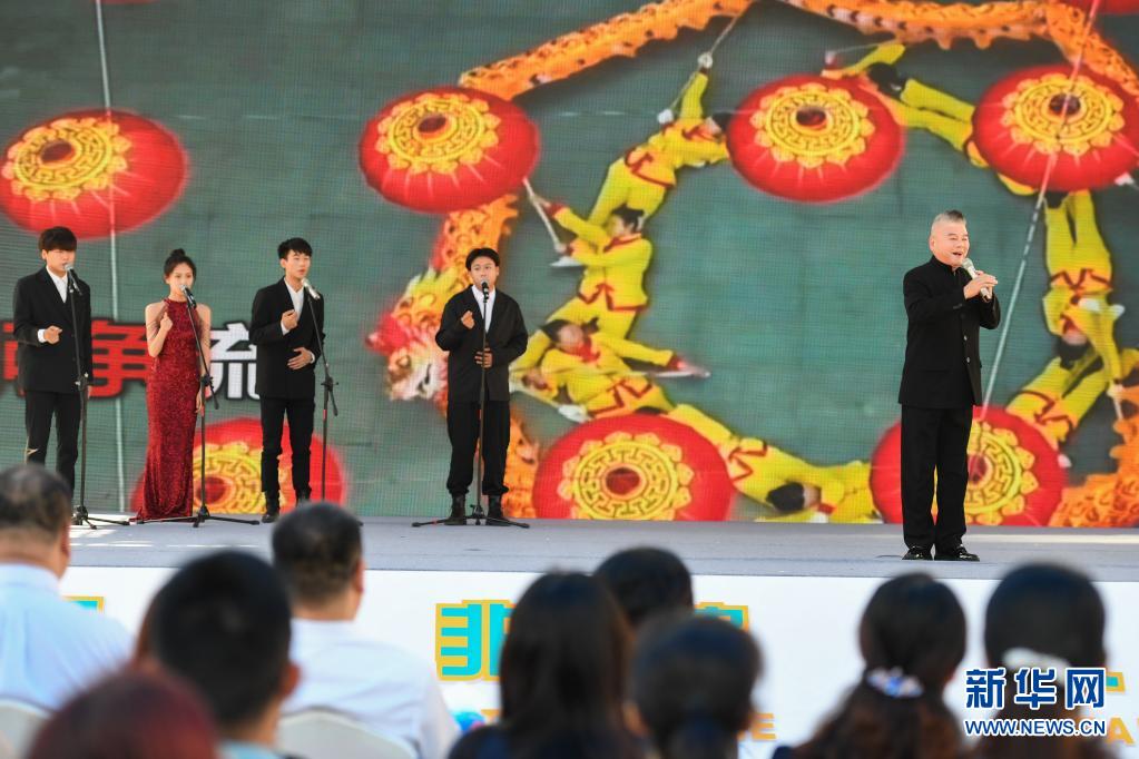 6月6日,在长沙市非遗宣传展示活动现场,湘剧国家级非遗代表性传承人曹汝龙(右一)与乐团成员共同表演湘剧曲目。新华社记者陈泽国摄