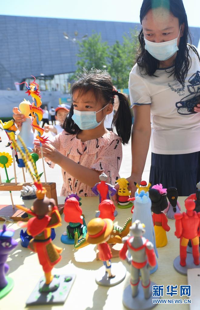 6月6日,在长沙市非遗宣传展示活动现场,小朋友和家长在观赏面塑作品。新华社记者陈泽国摄