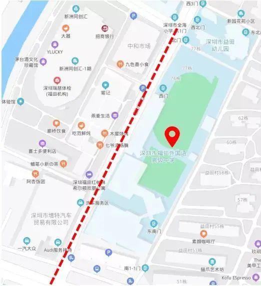 宝安第一外国语学校高中部 :第一外国语学校门口学子路路段原则上禁止社会车辆通行;
