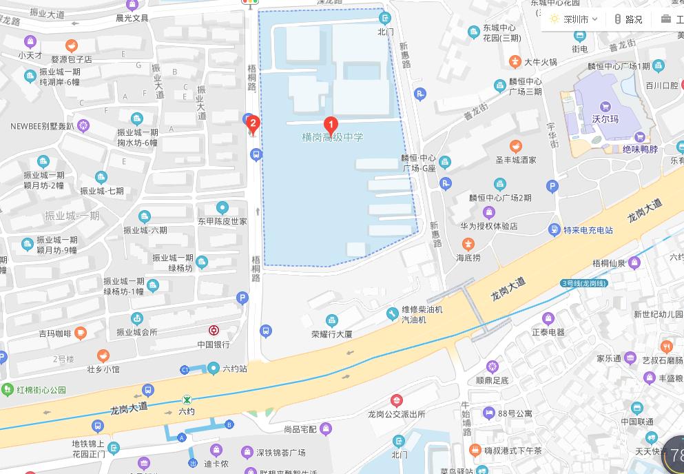 深外龙华高中部 :新樟路(五和大道—中森公园华府出入口)。
