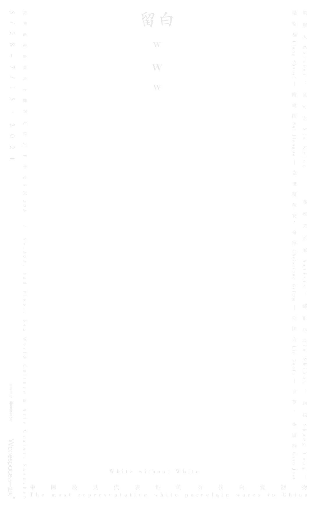本次展览由 30 件最具代表性的中国历代白瓷,和邱世华、梁绍基、尚扬、隋建国、刘国夫、卡萝·杰斯特(Caro Jost)、克里斯蒂安·格琳(Christiane Grimm) 这7位当代艺术家的精彩作品共同构建起一个古今中西、跨时空的对白场域。