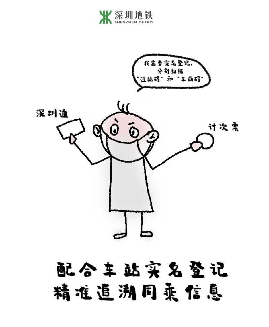 持普通深圳通卡和计次票的乘客每次出行时需进行实名登记,分别扫描“进站码”和“车厢码”;使用腾讯乘车码等实名认证票卡的用户只需扫描“车厢码”。从车站边门通过的老人、残障人士等优惠乘车群体,由车站工作人员协助进行人工登记,以便疾控单位快速精准地追溯同乘人员信息,实现疫情防控的“早发现、早报告、早隔离、早治疗”。