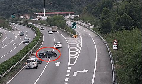 过了一会儿,黑色小车向右“探出”半个车身,越过导流线驶入大托山服务区。几分钟后,黑色小车离开了服务区。