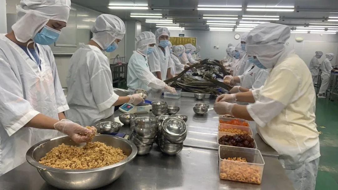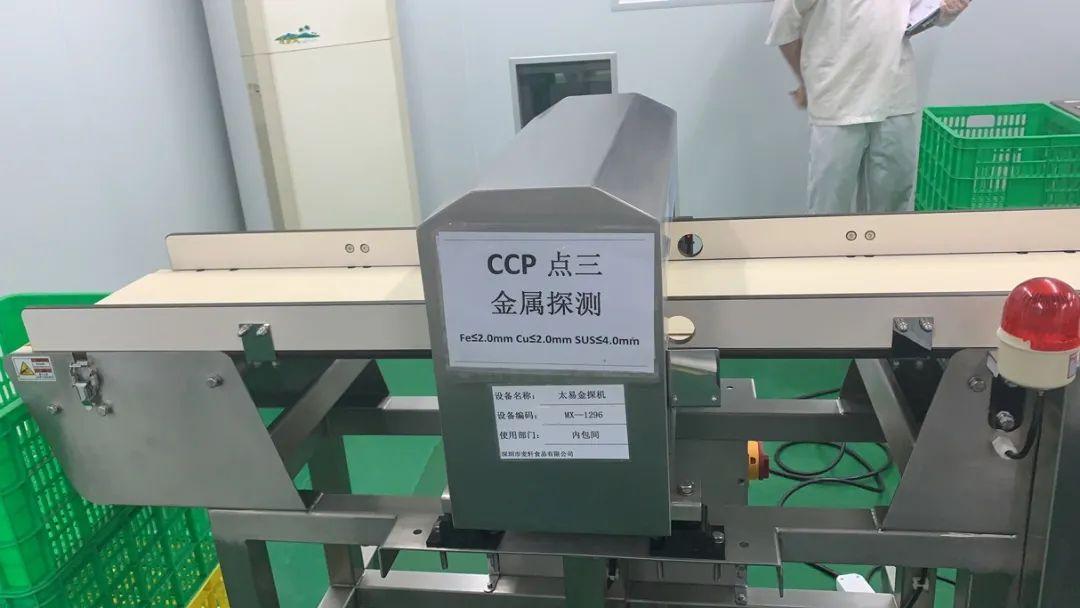 工作人员利用金属异物检测机对粽子等包装产品进行检测