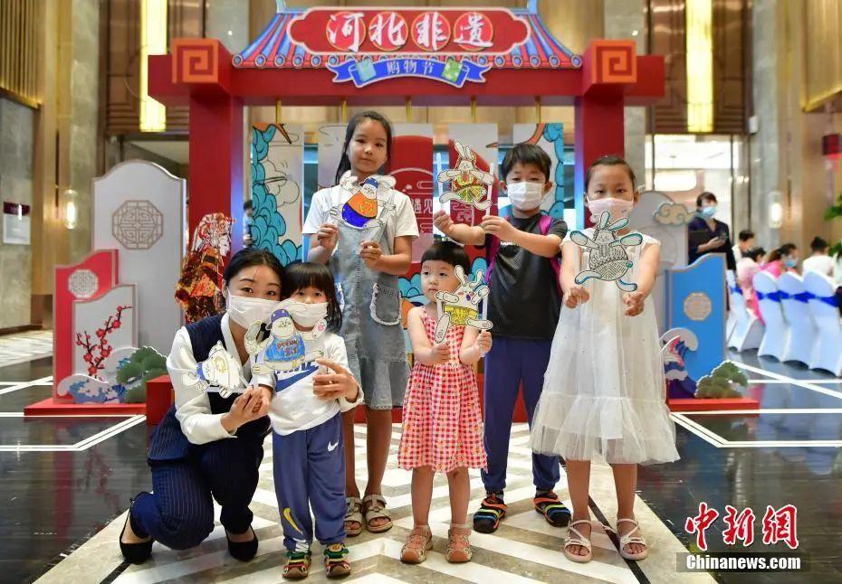 资料图:2020年6月13日是“文化和自然遗产日”,河北石家庄的小朋友们在家长陪伴下亲手制作非遗手工艺品“皮影”。图为小朋友们展示自己制作的“皮影”作品。中新社记者 翟羽佳 摄