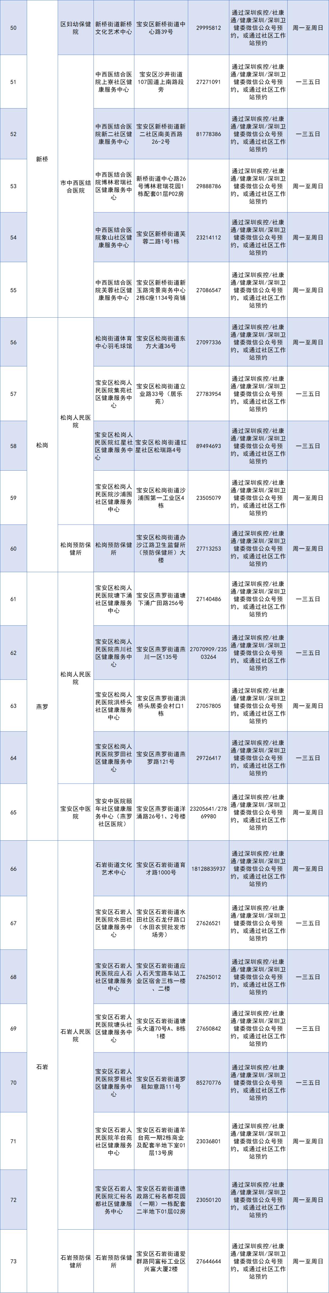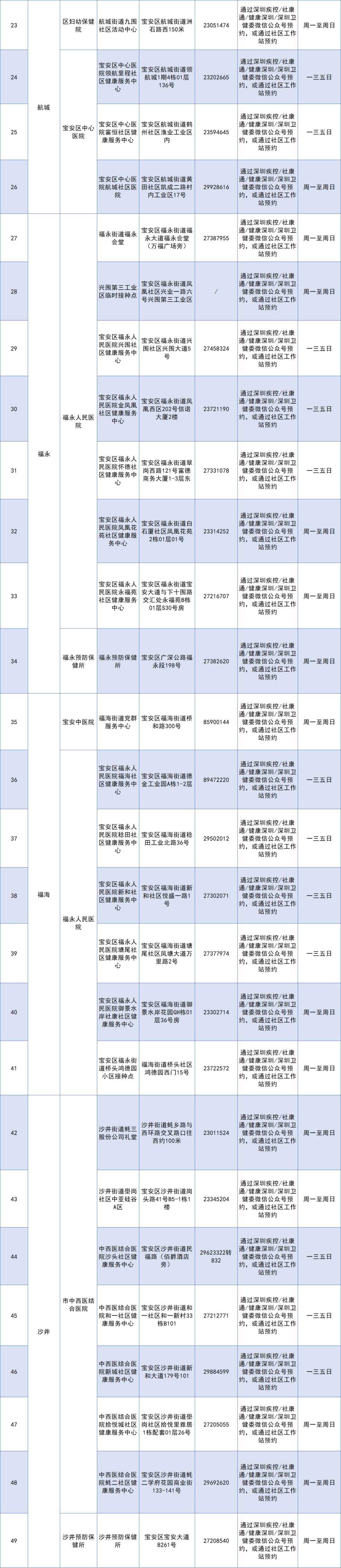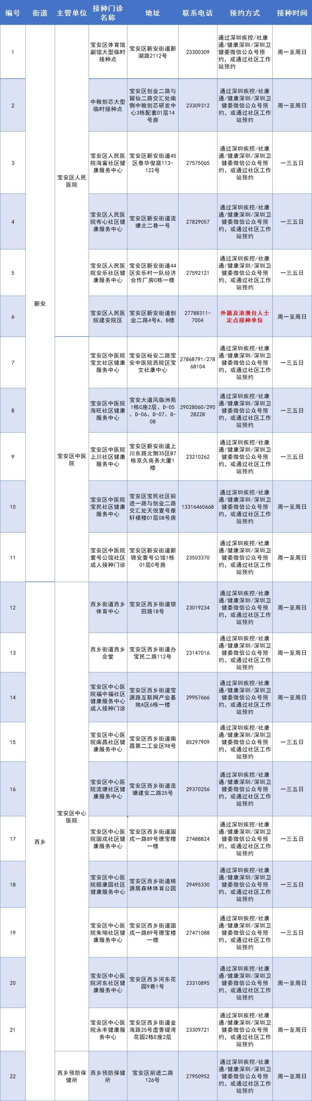 宝安区新冠疫苗指定接种点相关信息及预约方式公示如下,请各位市民及时关注相关预约渠道。
