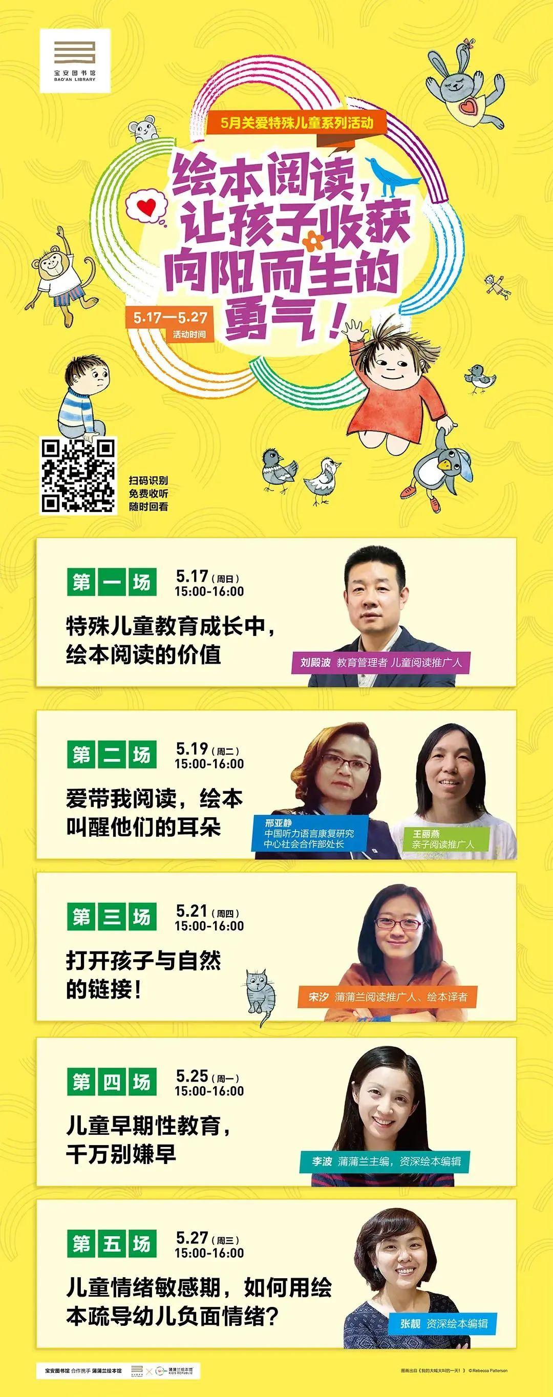 这几年,绘本越来越较广泛应用在学前教育中,但在特殊教育中却非常少见。深圳宝安区图书馆携手蒲蒲兰绘本馆一起联合发起,邀请行业内专家举办线上讲座,让更多的家庭了解绘本的价值。