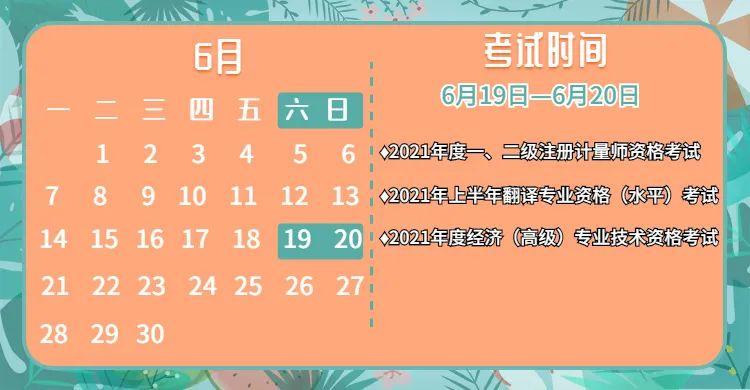 2021年度一、二级 注册计量师资格考试 | 6月19日 (一级) 6月20日 (一、二级) |