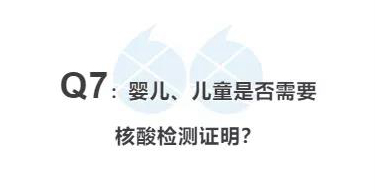 与成人同行的2岁(含)以下婴儿,只要成人出具有效的核酸检测证明,则同行的2岁(含)以下婴儿不用再提供核酸证明。儿童需要提供核酸检测证明。
