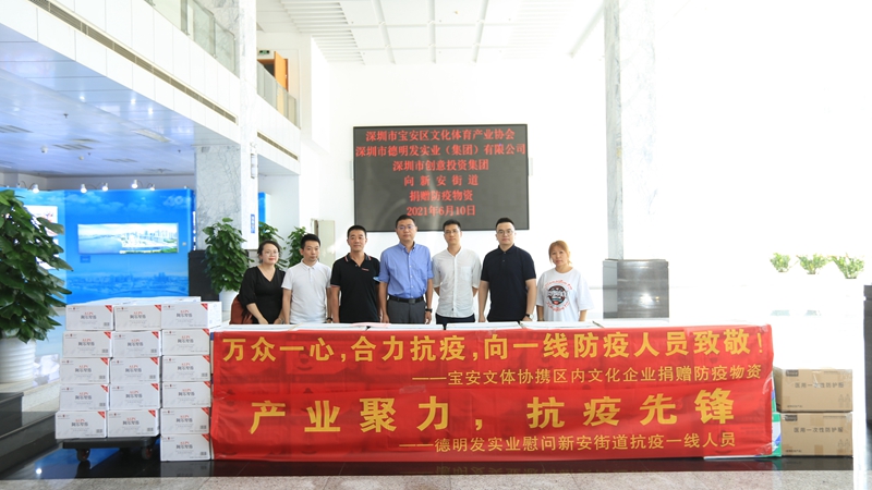 读特客户端·深圳新闻网2021年6月11日讯(记者 谢孙武 贺靛婧)为坚决贯彻落实国家、省、市关于疫情防控的部署要求,打赢打好疫情防控这场硬仗,宝安区的医务人员、社区工作人员、志愿者等一线工作者顶着炎炎酷暑奋战在防疫前一线,进行核酸检测排查工作。由于防疫物资需求迫切、时效性强,宝安区文化体育产业协会向企业发出倡议,号召区内文化企业捐款捐物。会员们纷纷踊跃响应,积极献出爱心,12小时内已有9家企业参与捐款捐物,总计募集到7万元善款、9万余个口罩。6月10日,深圳市宝安区文化体育产业协会携区内9家文化企业,现场向宝安区9个街道和社区防疫点捐赠了500件防护服、272400个口罩、7200瓶饮用水等防疫物资。
