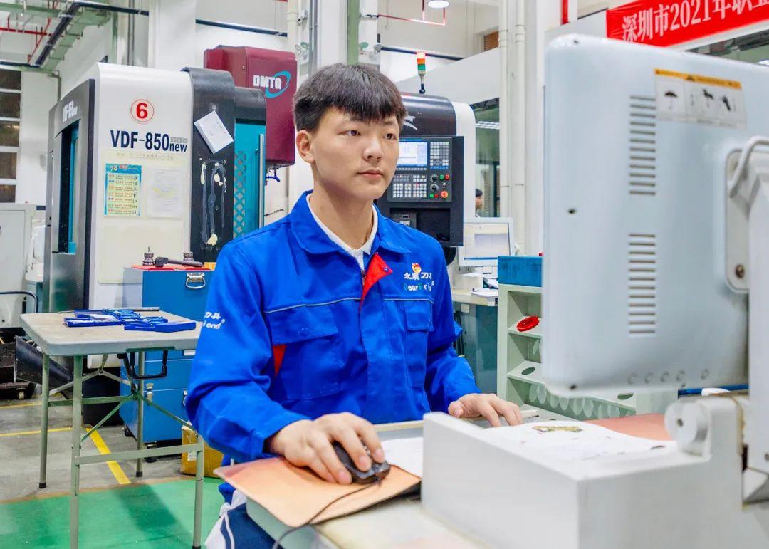 以“匠心”炼技艺——他富有工匠精神,锤炼过硬本领,掌握UG工程设计、CAD绘图等多门数控专业技术,并以优异的成绩考取机械冷加工职业资格证。