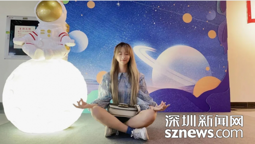在互动打卡区,坐在月球上的“宇航员”也开始闭眼,以舒服的姿势坐在月球上,等候大家的来临。在独立封闭的轻松盒子里面,动态的投影画面,配合着轻松频率绵延的音符,在耳朵里面、在脑海里,流淌、轻拂而过,构成ASMR颅内高潮。