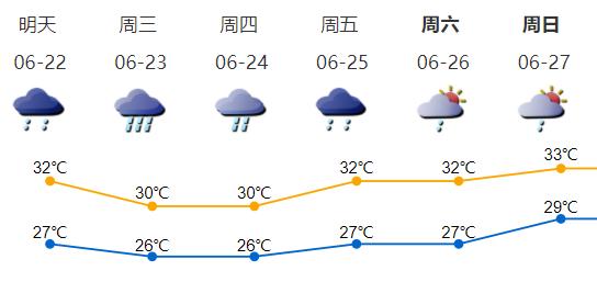 展望6月下旬至7月上旬我市高温天气和局地热雷雨并存,期间受台风影响可能性较小。