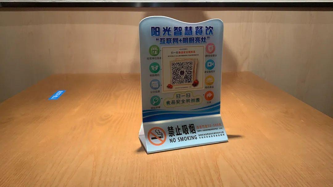 △餐桌上放置“互联网+明厨亮灶”二维码,消费者扫码可查看餐厅的食品安全情况