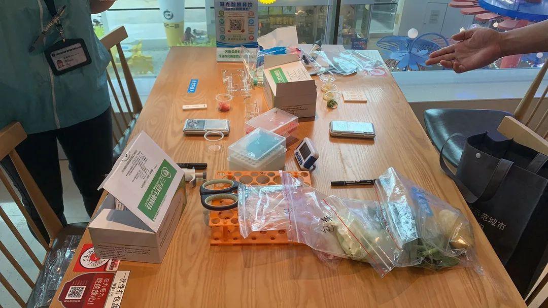 △“蓝马甲”对后厨原材料进行抽检,结果均合格