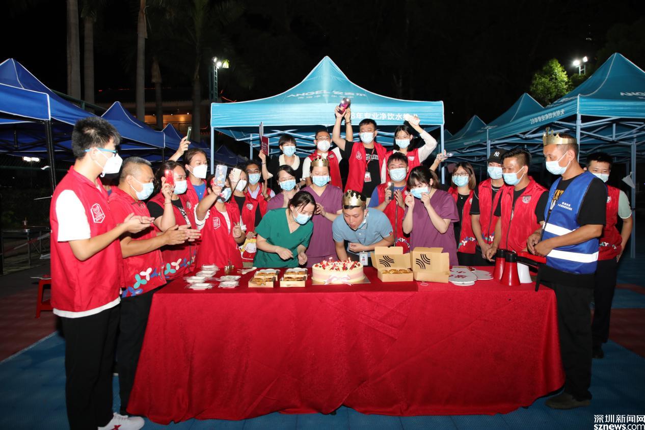 ▲粤桂社区在核酸采样结束后特意为集团总部当天生日的通讯工程师林嘉乐准备了蛋糕和仪式庆祝