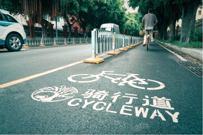 创新采用环氧沥青铺装材料,进一步优化提升市民骑行出行体验。