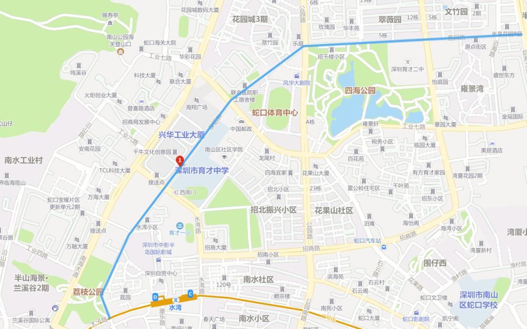 荔园路位于南山区,周边有育才中学、蛇口体育中心、蛇口人民医院等众多文体卫生机构