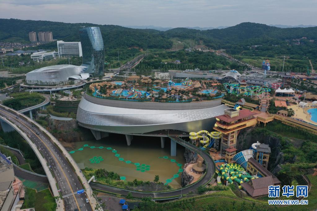 这是2020年7月11日无人机拍摄的湘江欢乐城。湘江欢乐城所在地原是一座巨大的废弃矿坑,历经6年建设,建成总面积约3万平方米的大型室内滑雪场。新华社记者薛宇舸摄