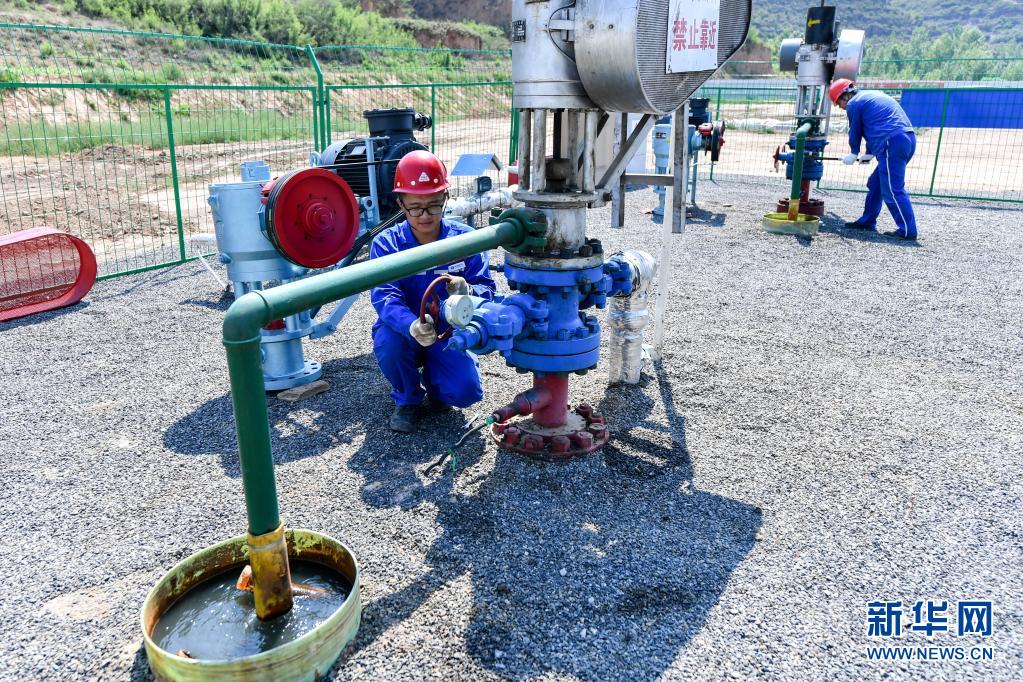 6月22日,华新燃气山西蓝焰煤层气集团有限责任公司武乡勘探开发项目部的工作人员在一处排采现场进行井口维护。新华社记者曹阳摄