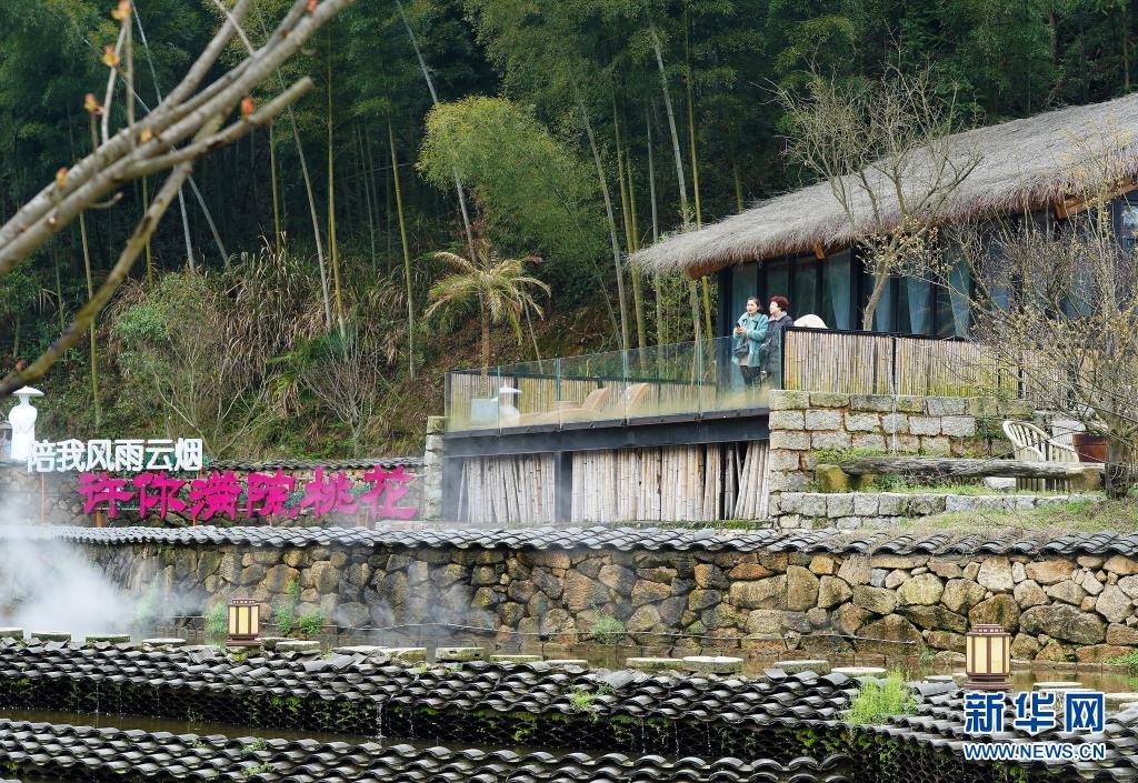 游客在江西省南昌市湾里管理局九龙溪田园综合体的民宿村休闲观光(3月20日摄)。新华社记者万象摄