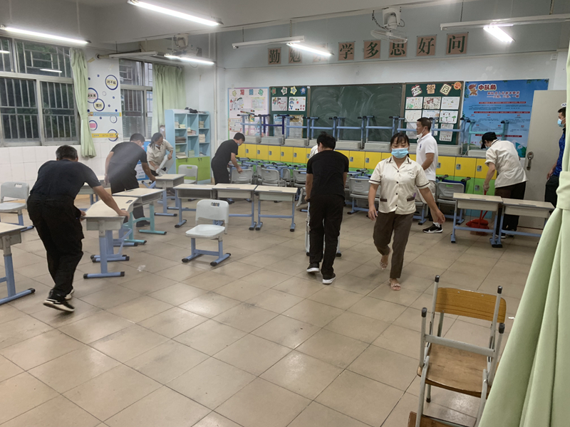 23日,考务小组又根据参考人数,认真选择了24间通风良好、相对独立的教室作为考场,并选择表面光滑易于清洁的桌椅为考桌,并齐心协力根据封闭区隔离考生4人一间、封控区隔离考生9人一间的标准,紧急布置隔离考场17间,备用考场7间,按照前后左右均大于2米的间距摆放好桌椅,再进行清洁、消杀。