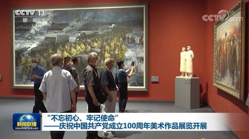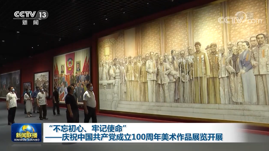 央视网消息(新闻联播):由中共中央宣传部、中国文联主办的“不忘初心牢记使命——庆祝中国共产党成立100周年美术作品展览”6月27日在中国共产党历史展览馆开展。展览聚焦建党百年的重大历史事件、杰出历史人物和优秀共产党人,形象化地再现了中国共产党的光辉历程和不朽功勋,以艺术之美诠释了在党的领导下中华民族实现了从站起来、富起来到强起来的历史性飞跃,以时代画卷描绘了中国人民阔步新征程、奋进新时代,实现中华民族伟大复兴的光明前景。