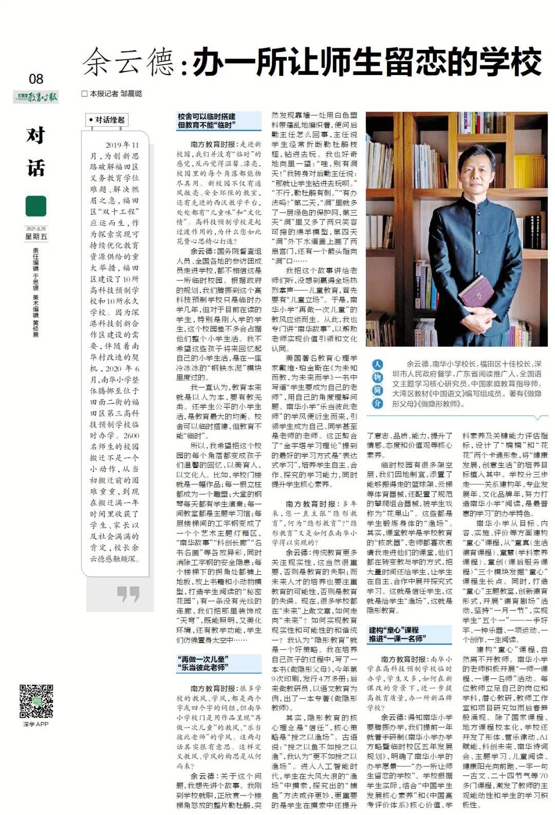 南方教育时报:南华小学在高科技预制学校临时办学,学生又多,如何在新课改的背景下,进一步提高教育质量,办一所新品牌学校?